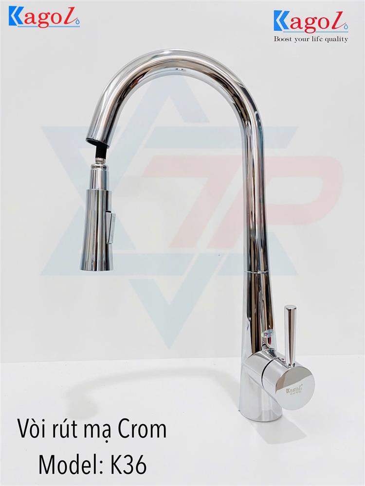 Vòi rửa bát Kagol nóng lạnh cần cứng, vòi rút đầu tròn